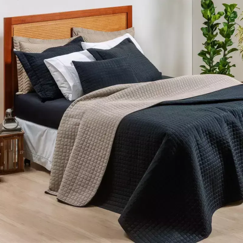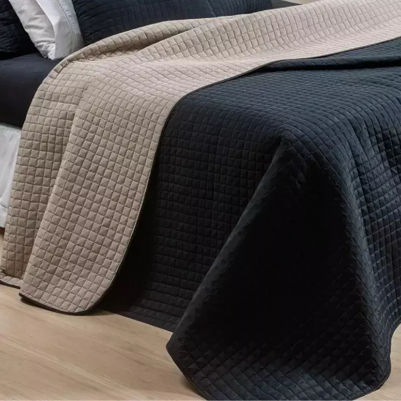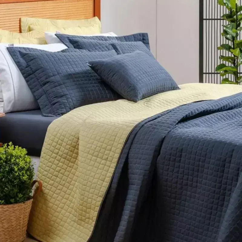 O Cobre Leito Queen Antuérpia é dupla face, ou seja, você pode aproveitar os dois lados do conjunto, oferecendo ainda mais versatilidade na decoração do seu quarto. Assim, você pode alternar entre as duas faces de acordo com seu gosto e preferência, renovando o visual sempre que desejar. Renove sua cama com o Cobre Leito Queen Antuérpia e crie um ambiente sofisticado e convidativo em seu quarto. Essa combinação de materiais garante durabilidade, maciez e resistência às peças, proporcionando uma sensação agradável ao toque e uma ótima qualidade de sono.