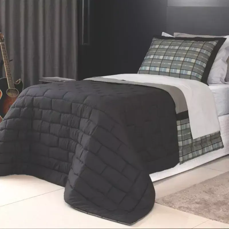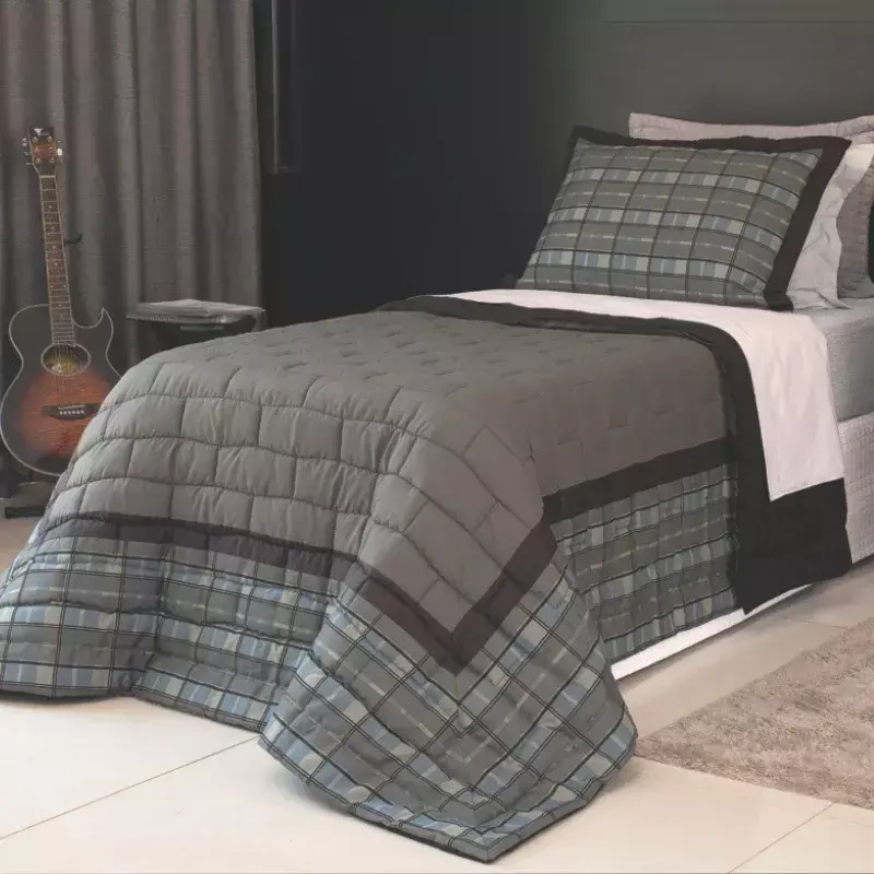 Moderno e Versátil. O quarto ganha mais personalidade com a estampa xadrez. O diferencial dois em um, permite criar e ousar sem nunca sair de moda. Imagens ilustrativas.