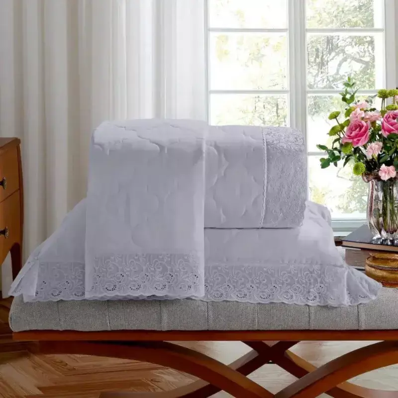 Experimente todo o luxo e o conforto da Linha Cristal Coleção Clarys Buettner. O Kit Cobre Leito 300 Fios Cristal Renda Clarys Buettner é fabricado em Percal 300 fios de altíssima qualidade. Com várias opções de cores e tamanhos que combinam perfeitamente com a decoração e o estilo do seu ambiente. A Renda Clarys é o grande destaque, proporcionando um acabamento premium à peça. Torne cada noite uma experiência única!