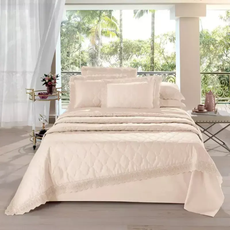 Experimente todo o luxo e o conforto da Linha Cristal, Coleção Renda Estela Buettner. O Kit Cobre Leito 300 fios Cristal Renda Estela Buettner é fabricado em Percal 300 fios de altíssima qualidade. Com várias opções de cores e tamanhos combina perfeitamente com a decoração e o estilo do seu ambiente. A Renda Roma é o grande destaque, proporcionando um acabamento premium à peça. Torne cada noite uma experiência única! Mais um produto com a qualidade Buettner, a marca de Cama, Mesa e Banho mais querida do Brasil.