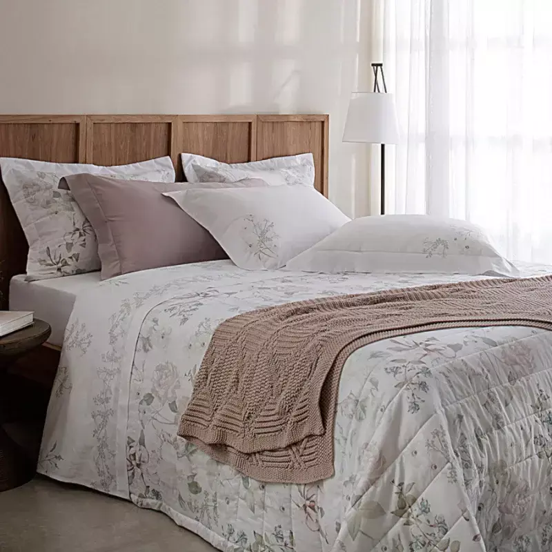 A Coleção Hédera remete a sensações de calma e serenidade. Símbolo de proteção, as heras e florais aquarelados criam uma composição romântica. Inspirada na pureza e delicadeza das flores, e ajudam a compor uma atmosfera fresca e orgânica trazendo refinamento e sofisticação. O modelo possui ainda toque ultra macio e aconchegante, muito agradável de sentir. Respirável, com ótima maleabilidade e excelente qualidade. Qualidade e design Buddemeyer!
