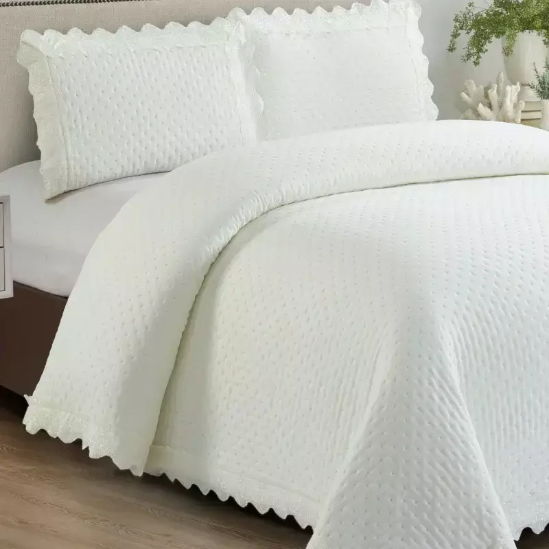 A colcha em Bordado Inglês foi pensada especialmente para você que deseja uma cama sofisticada, sem deixar de lado o conforto e a qualidade que você precisa, com detalhes em bordados e cores neutras em um delicioso toque de algodão que deixa ainda mais elegante e romântico o seu ambiente!