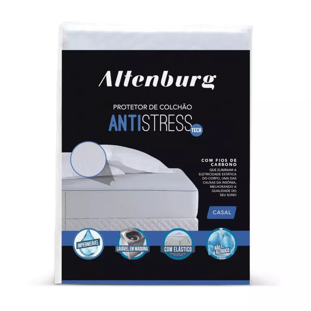 A família Antistress aumentou e ganhou um novo membro: o Protetor de Colchão Antistress Impermeável. Através dos fios de carbono, o protetor de colchão antistress elimina a eletricidade estática do corpo, uma das causas da insônia, melhorando a qualidade do sono.