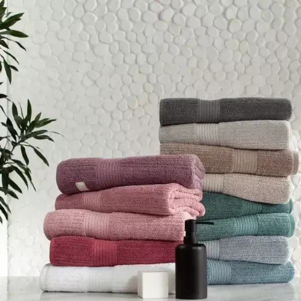 Toalhas em felpa produzidas em 100% Algodão Fio Penteado – característica obtida através um processo de alinhamento das fibras do algodão que apresentam um brilho extra que realça as cores, são mais macias, volumosas e tem maior durabilidade. Acabamento especial que proporciona alta capacidade de absorção, garantindo maciez, toque delicado, volume acentuado, além de brilho natural que realça as cores.